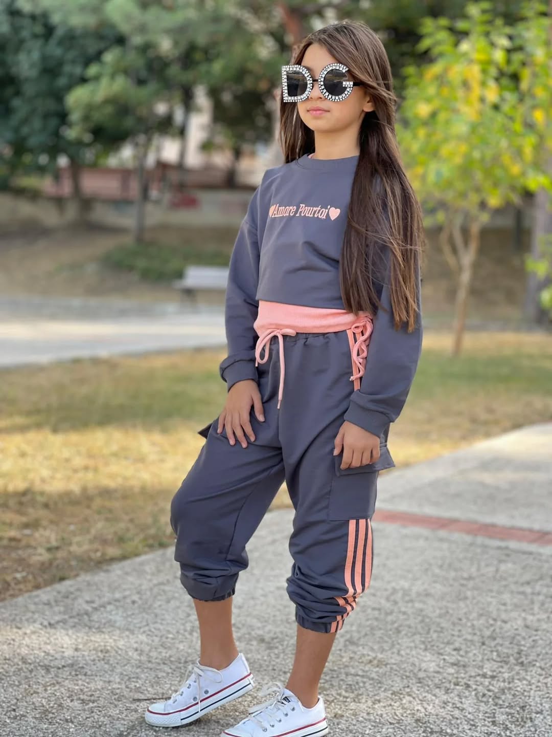 طقم سبور بناتي رمادي × خوخي – مريح وكاجوال